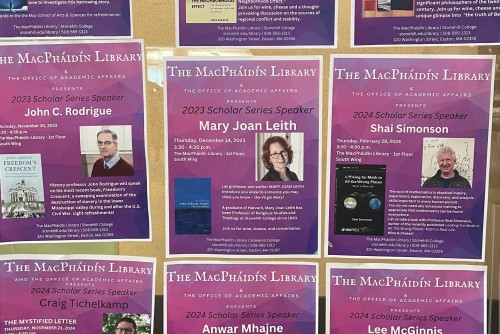 The primary aim of the Scholar Series at the MacPháidín Library is to celebrate and share the intellectual life of Stonehill College. Faculty from all disciplines who have published within the last 12-month period present their research in a conversational way to both the campus at large and the wider Easton community. The Office of Academic Affairs generously supports the cerebral with celebratory wine and cheese.Thanks to Easton Community Access Television (ECAT), this link will give you the opportunity to experience some of the lively and engaging presentations that have taken place over the past few years. Enjoy. Learn. Lux et Spes; these stimulating lectures are the essence of our motto.